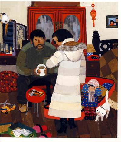 印象中我很小的时候,父亲就因为盖房子的原因经常出差。如同当年的父亲一样,故事中赶回家团圆的“爸爸”在用心一点点建立家园的完满,建立起女儿对他的重温和信赖。其实,他给孩子带来的何止是家的感觉和爱的抚慰,带来的还有孩子投入的依恋,和“爸爸”离去后再次的守望。