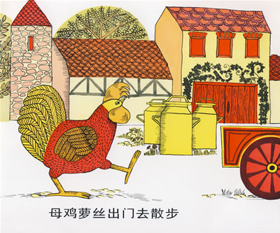 这天,母鸡萝丝走出鸡舍去散步。它没有发现,一只狐狸从后面悄悄跟了上来。萝丝穿过农家院子,身后的狐狸扑了上来。可它一脚踩到了钉耙,钉耙一个反弹,狠狠地打到了它的脸上。