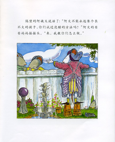 一个叫阿文的小老鼠很喜欢他的小毯子,从小到大从不离身,邻居的阿婶和爸爸妈妈想尽了办法也不能让阿文放弃,最后,还是妈妈想出了好办法:妈妈把小毯子做成了一条一条的小手帕。现在,阿文每天都会带着他的小手帕,再也没有人说什么了。