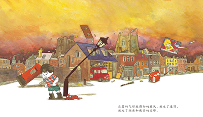 全书成功的关键在于精确的文图合作和图像表现。它的文字简约冷静,为故事穿针引线,像稳健而不啰嗦的导航员,不疾不徐地引领读者到达每一站重要的景点。然后,让图画充分运用线条、色彩、明暗、布局和造型等元素,、在每一个情节波动之处,制造最恰当的象征、气氛和情境,让读者看到精彩的风景,引发相应的情绪感觉。如母亲被放大的阴影、她手上的锅子、尖锐的白色线条、呈网状的密布行星、亚瑟紧抓树枝坠落与分裂的模样、穿太空衣打毛线的奶奶、相随的小猫、车身上的标语、窗户、床……都安排得恰如其分,使读者在不知不觉中,感受到故事的力量、幽默和涵义,也展现了图画书的魅力和说服力。