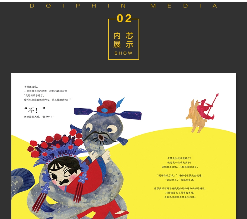 《新老鼠娶亲》为中国精品原创绘本,英国剑桥艺术学院的华裔画家将古老民俗故事创意新编,带来一场惊险的梦境冒险,荣获美国3X3国际插画大奖。本书题材为冒险故事、幻想绘本、想象力培养绘本。本图画书根据老鼠娶亲这个流传广泛的中国民俗故事改编而成。在中国民间,相传正月初三晚上是“老鼠娶亲”的大日子。在《新老鼠娶亲》中,小女孩巧婷的表姐马上就要就结婚了,她跟随家人来到乡下准备参加表姐的婚礼,却跟随一只绣球,不经意间进入到奇幻的老鼠娶亲世界,在她即将要嫁给老鼠先生之际,突然遭遇癞蛤蟆抢亲,接着又是泥鳅前来劫道,一波未平一波又起,一只大花猫也冲进娶亲队伍,巧婷又惊又急,她还能回到现实世界吗?这本亲切而又别致的《新老鼠娶亲》是身在海外的华裔游子对于民族文化、故乡风土和传统艺术的深情一瞥。作者别出新意,采用中西合璧的艺术手法,将水彩、剪纸等传统美术中揉入拼贴等西方元素,不仅吻合且丰富了民间故事的色调与情味,又更彰显国际色彩。